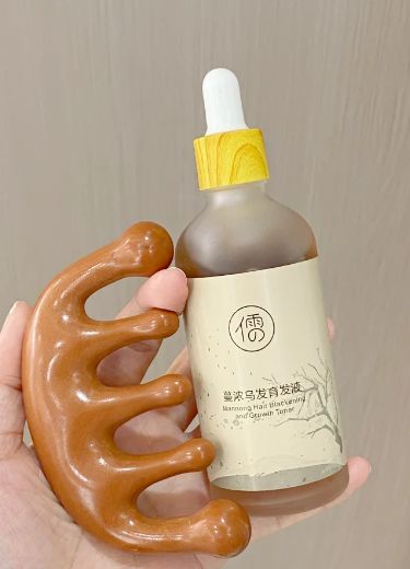 它是花果香调,中药味较淡,味道比较好闻。质地水润清透,流动性很强像水一样,吸收速度快,涂抹后头皮有清凉感,不会黏腻。发丝强韧度提升明显。坚持使用,对新生绒毛有一定的促生效果,还含有三重神经酰胺等修复成分,能修复受损头皮屏障。