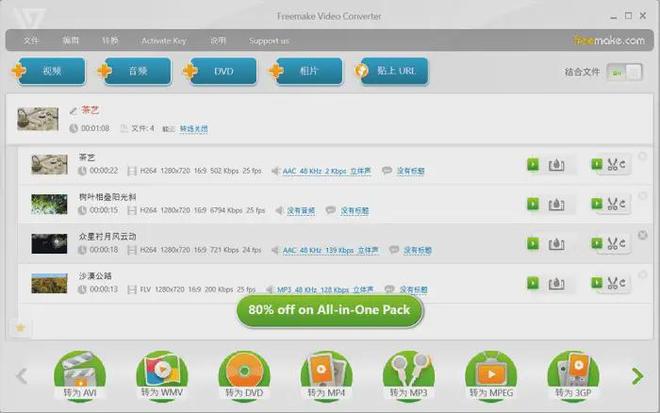 Freemake Video Converter软件操作端工具是一个比较特殊的工具,因为小编至今都感觉印象深刻,在小编第一次使用该软件对视频文件进行免费格式转换之后,事后浏览视频内容却被软件的水印糊了一脸。
