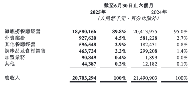 多品牌战略和外卖业务是今年上半年海底捞增速最猛的两大业务。财报数据显示,2025年上半年海底捞“其他餐厅收入”“外卖业务”的营收增速分别达到了227%、近60%,主营业务贡献占比均同比增长了1.8个百分点,分别达到2.9%、4.5%。但两大业务对海底捞整体业绩拉动尚不明显,难以成为海底捞的第二增长曲线。